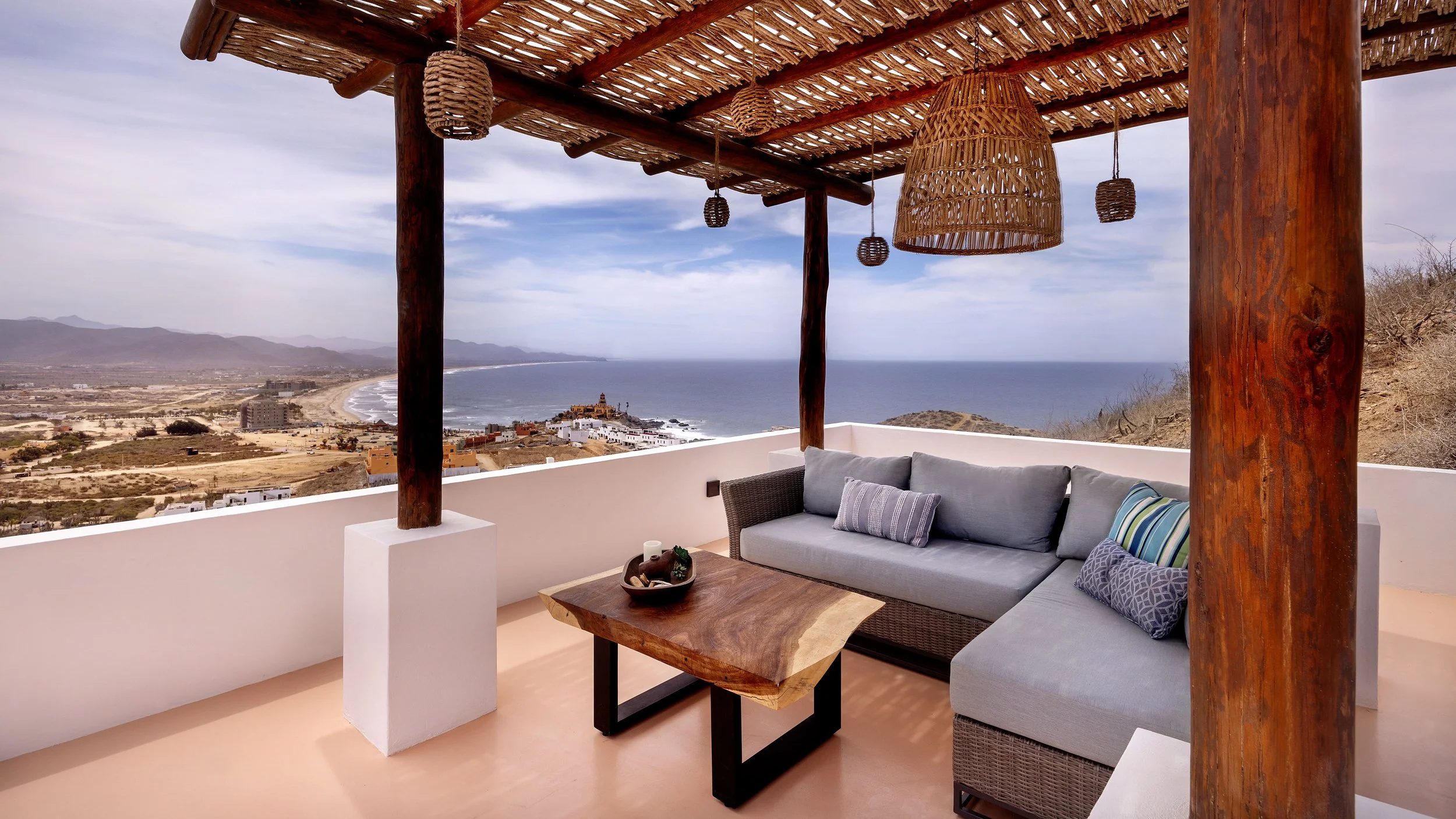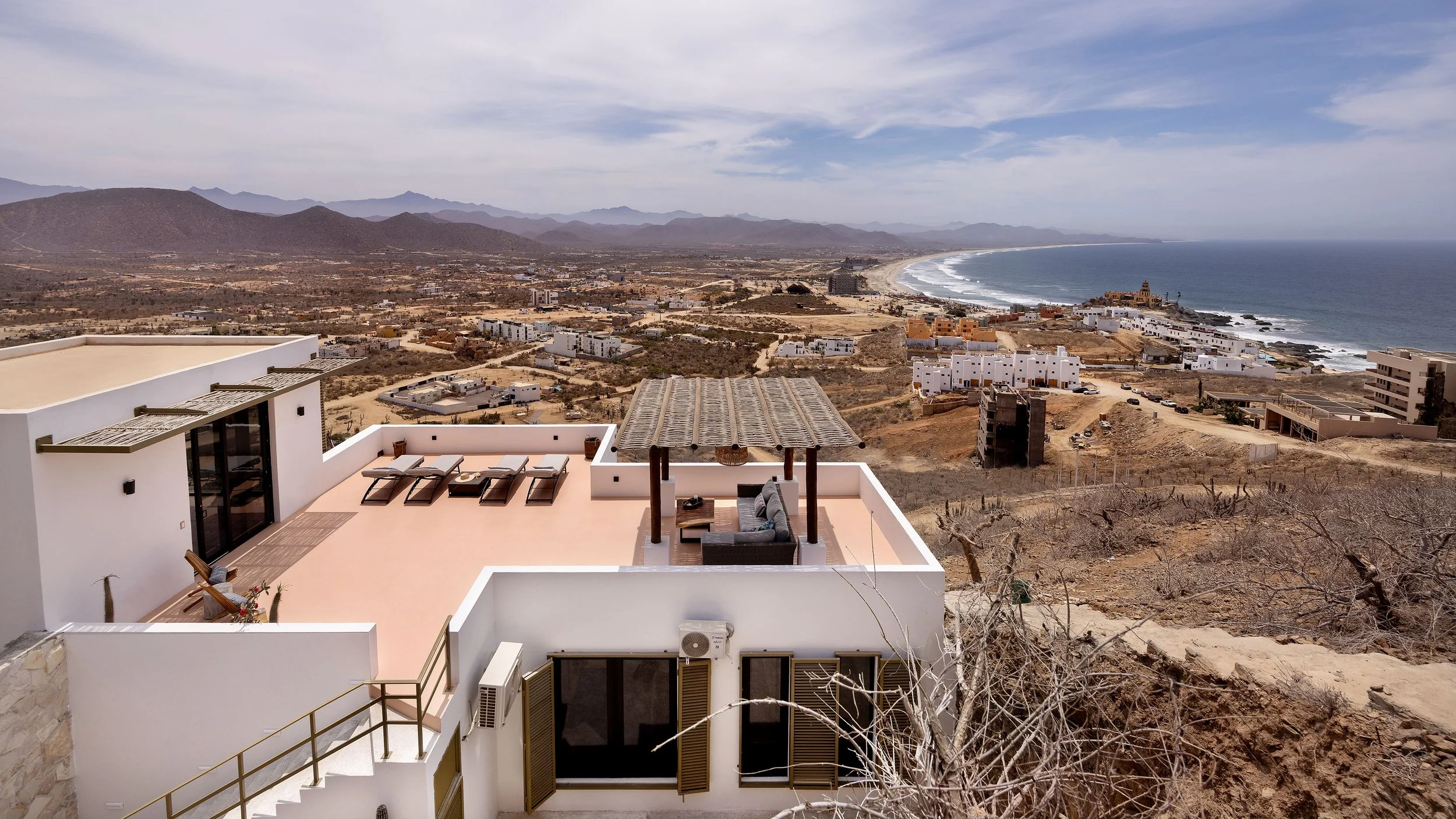 Casa Luna is located high on the hillside just above Cerritos Beach — one of the few swimmable beaches on the Pacific side of Baja. This elevated position offers sweeping ocean views, cooling breezes, and front-row seats to epic sunsets. Just minutes from surf breaks, beachfront restaurants, and the vibrant Pescadero community, the location offers both privacy and access.